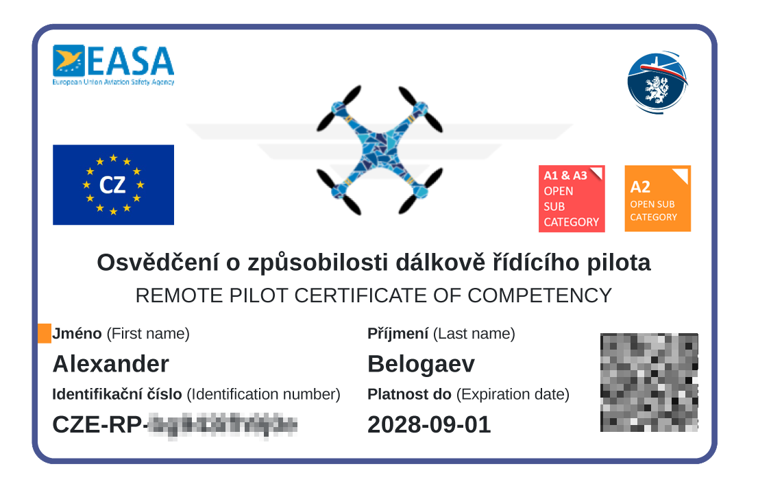 Once you complete the course and pass the official exam, you will be given an EASA A1/A3 remote pilot licence.