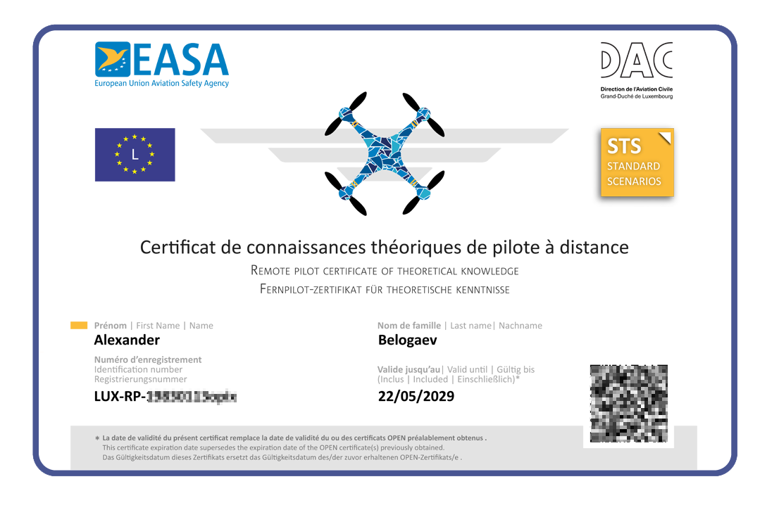 The training for obtaining the EASA A1-A3 license was very intensive and encompassed extensive material covering safety, navigation, and legislation. This course allowed me to gain a deeper understanding of the aspects of flying near people and structures.